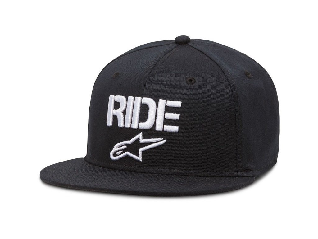 Pánská černá kšiltovka Ride flat s rovným kšiltem a 3D vyšitým logem Alpinestars.