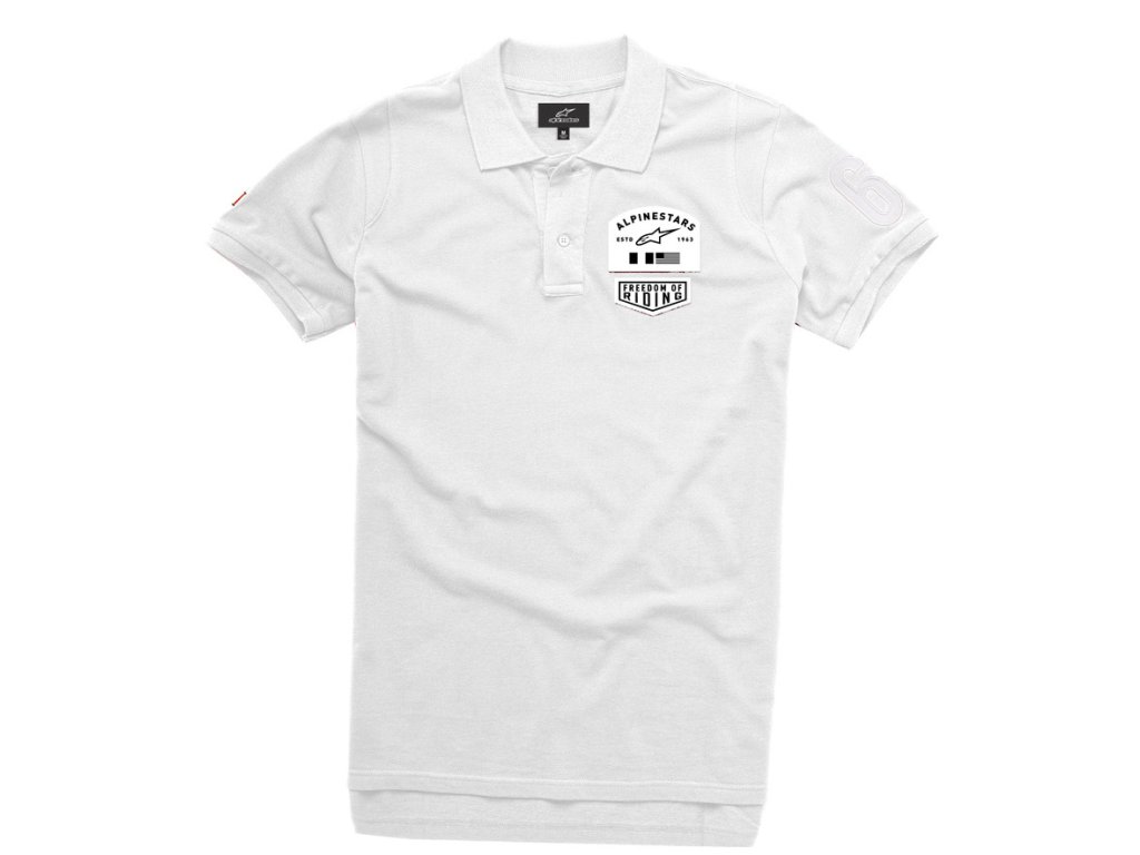 Pánské bílé polo tričko Pivot s krátkým rukávem, u krku zapínání na knoflíčky. Jednoduchý styl polo trika s logem Alpinestars na hrudi a nenápadným číslem na jednom z rukávu. Moderní střih a kvalitní zpracování.