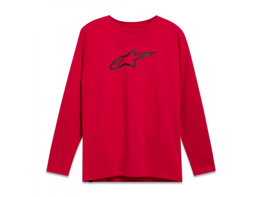 Pánské červené tričko s dlouhým rukávem a logem Alpinestars.