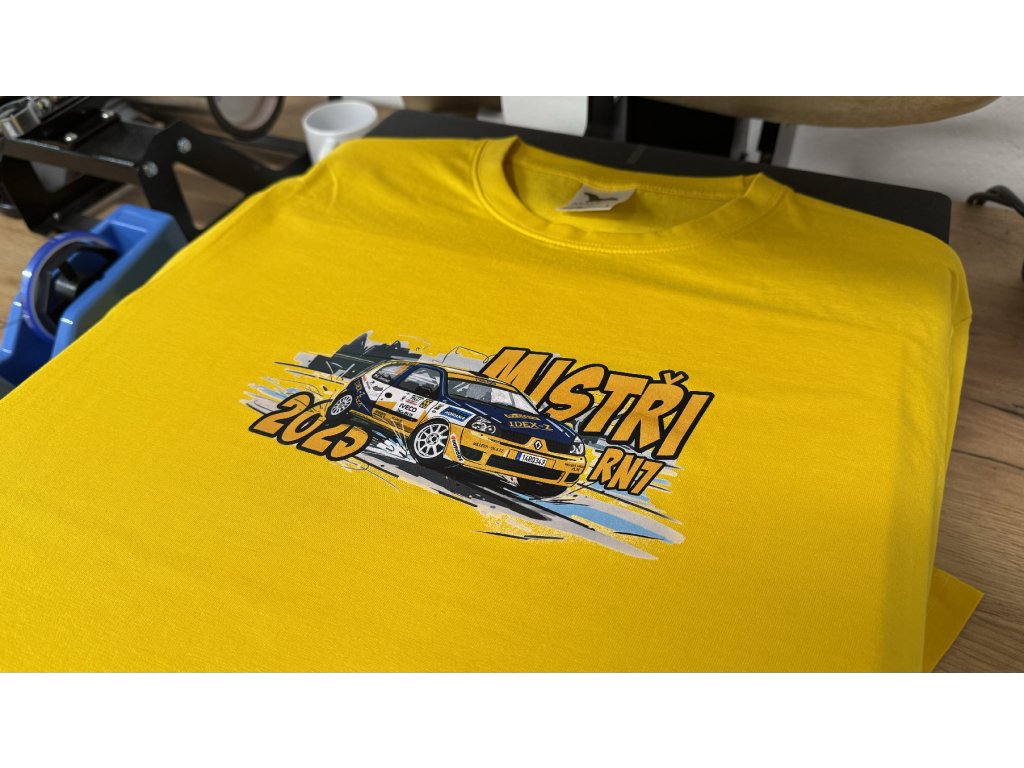 Mistrovské tričko s krátkým rukávem týmu RAPICH - Racing Pilka Chovanec. Posádka legendárního žlutomodrého Clia, která v sezóně 2025 dosáhla na vytoužený titul ve třídě RN7, když kluci dokázali zdolat nejen všechny "cupové" Adamy, ale především s velkou pomocí týmu, kamarádů a tolik potřebným štěstím dostat auto do kondice, ve které dokázalo dokončovat závody. Vydřené výsledky v jednotlivých soutěžích, čtyři vítězství a jedno druhé místo, nula odstoupení. To jsou letošní rallysprintoví šampióni!